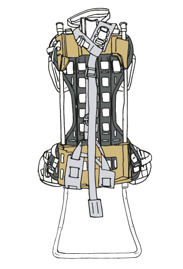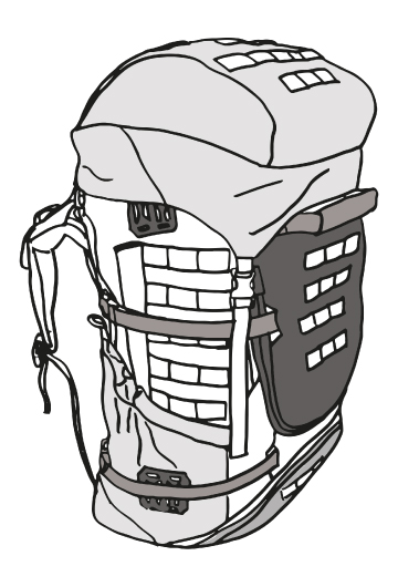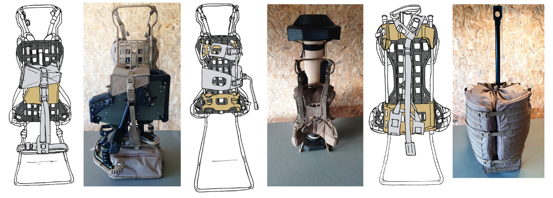 Le système permet la fixation de poches et d’interfaces spécifiques pour l’emport de matériels spécifiques, de petits à très grands volumes et de masse variable.